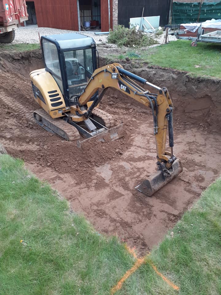 Noiret TP intervient sur place avec une pelle 2,8T, 6T ou 14T pour déblayer, évacuer ou terrasser.